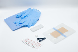 - 1 Paar Handschuhe, latex- und puderfreiBlaues Abdecktuch (innenliegend folgende Artikel)
